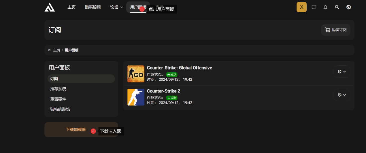 激活成功后,点击导航栏的用户面板,下载“加载器”。